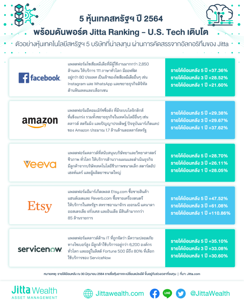 5 หุ้นเทคสหรัฐฯ ปี 2564 พร้อมดันพอร์ต Jitta Ranking – U.S. Tech เติบโต