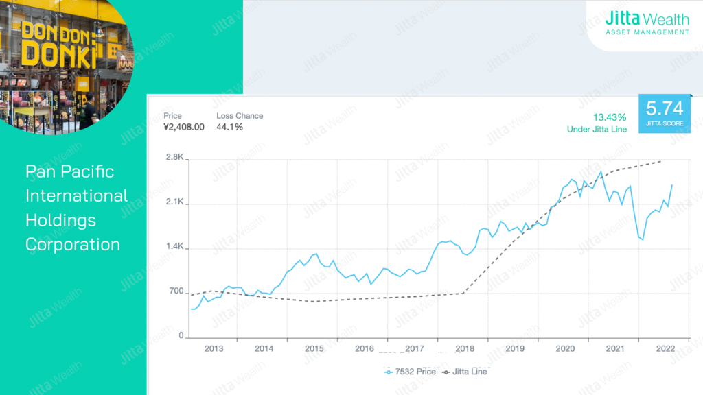 คุณอาร์ตพยายามค้นหาหุ้นญี่ปุ่นคุณภาพดีและเจอหลายบริษัทด้วยกัน หนึ่งในหุ้นญี่ปุ่นที่คุณอาร์ตลงทุน คือ Pan Pacific International Holdings Corporation ที่มีรายได้และกำไรสุทธิโตขึ้นอย่างต่อเนื่อง และราคาเคยขยับขึ้นไป 1 เท่าตัว หรือเป็น ‘หุ้น 1 เด้ง’ในเวลา 3 ปี