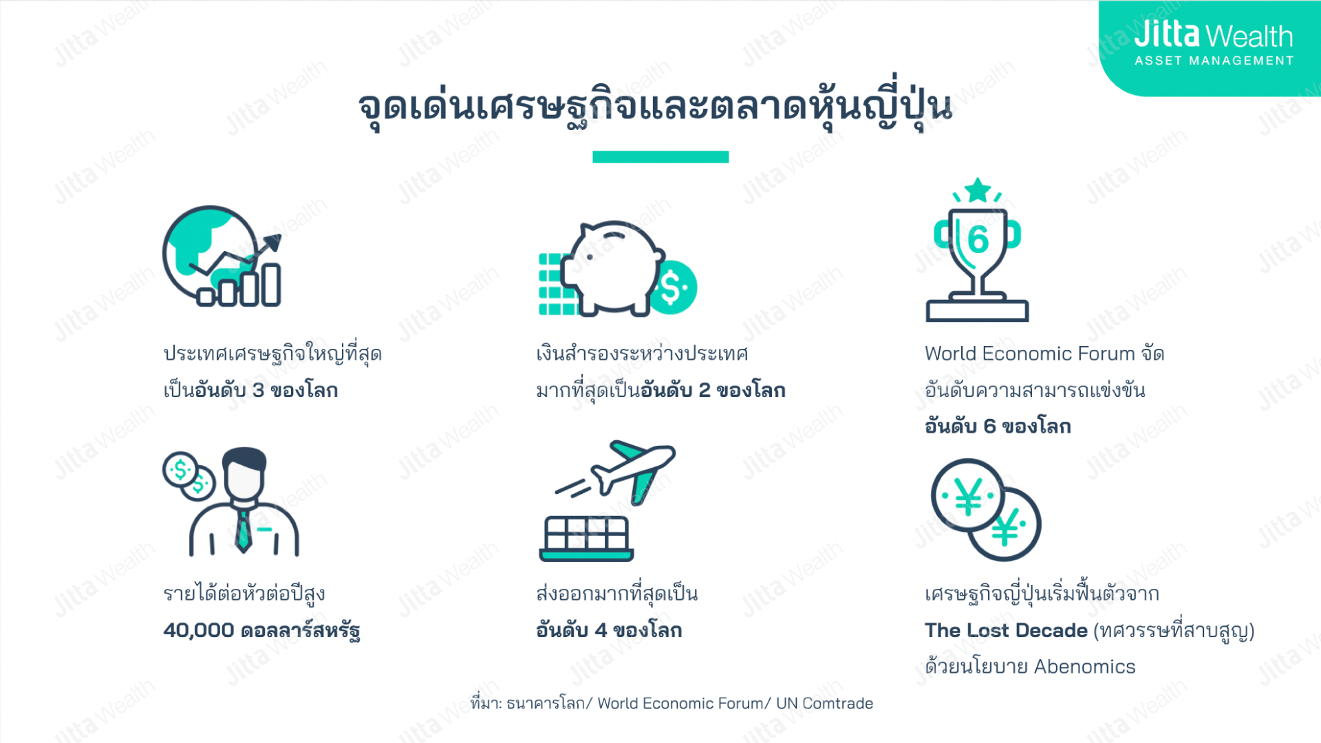คุณเผ่า ตราวุทธิ์ เหลืองสมบูรณ์ CEO Jitta Wealth และ คุณอาร์ต ชัชวนันท์ สันธิเดช ผู้ก่อตั้งเพจ Club VI ได้พูดถึงมุมมองของการลงทุนในหุ้นญี่ปุ่นที่หลายคนเข้าใจว่าเป็น Lost Decades ที่เติบโตช้า และคิดว่าตลาดหุ้นญี่ปุ่นไม่น่าสนใจในการลงทุนแล้ว