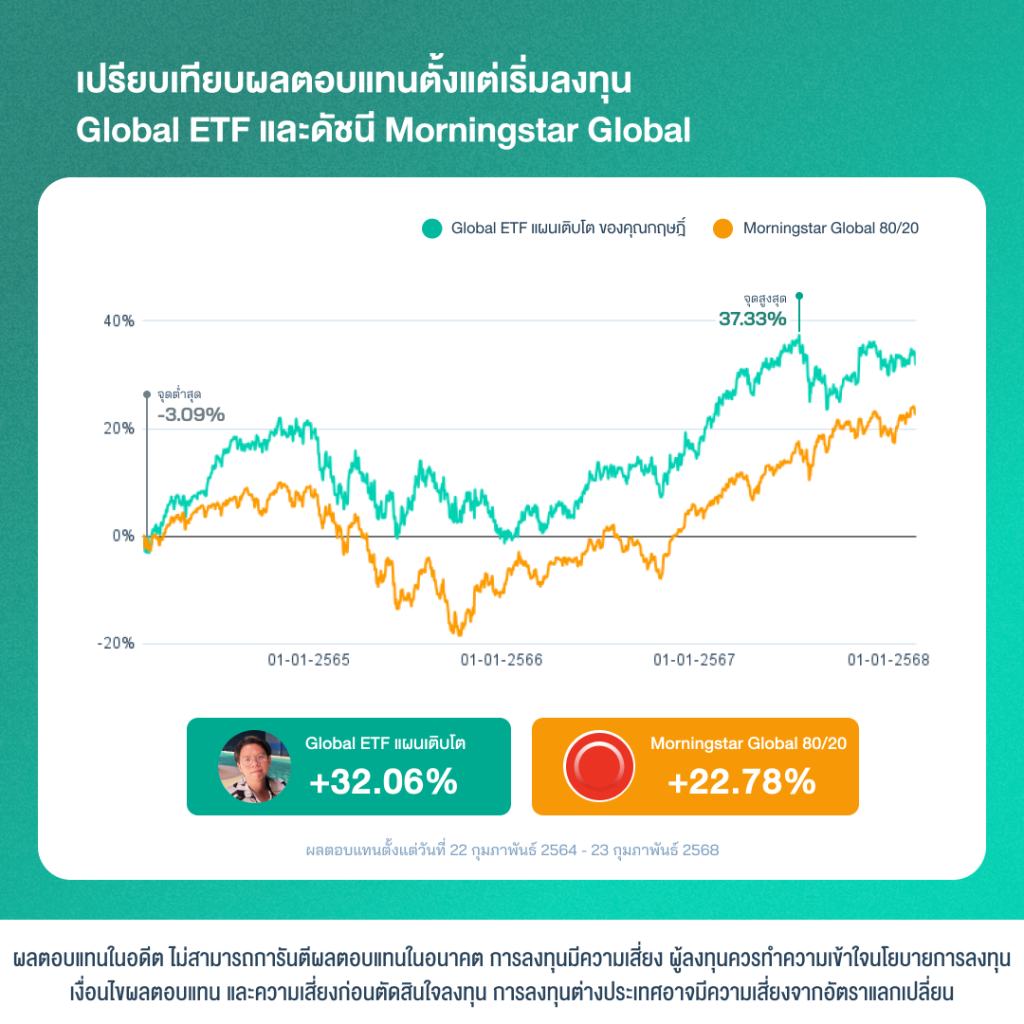 Global ETF (เติบโต) ผลตอบแทนรวม +32.06% (22 ก.พ. 64- 23 ก.พ. 68)