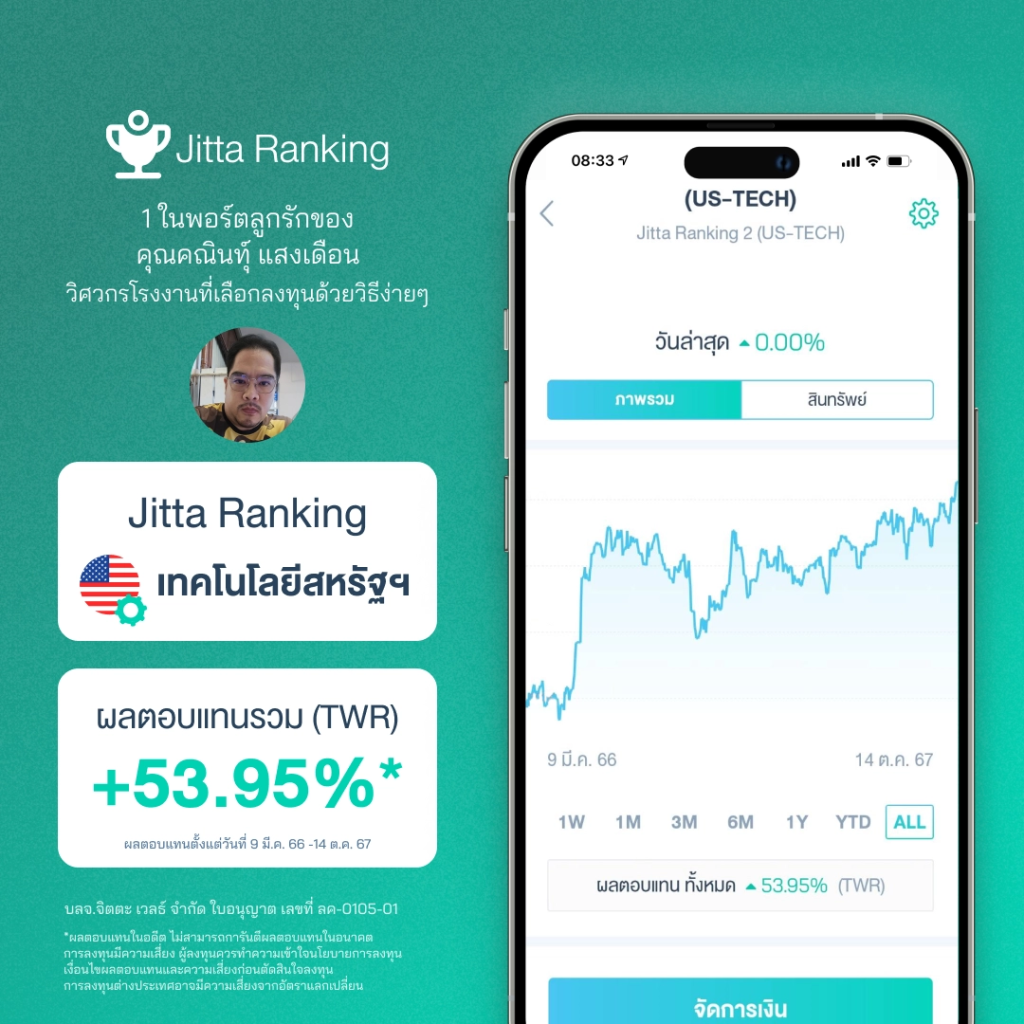 “เลือกการลงทุนที่สะดวกกับชีวิตเรา ลงทุนกับ Jitta Wealth ไม่ต้องดูอะไรมากก็ได้” Jitta Ranking หุ้นเทคโนโลยีสหรัฐฯ +53.95% (9 มี.ค. 66 – 14 ต.ค. 67)