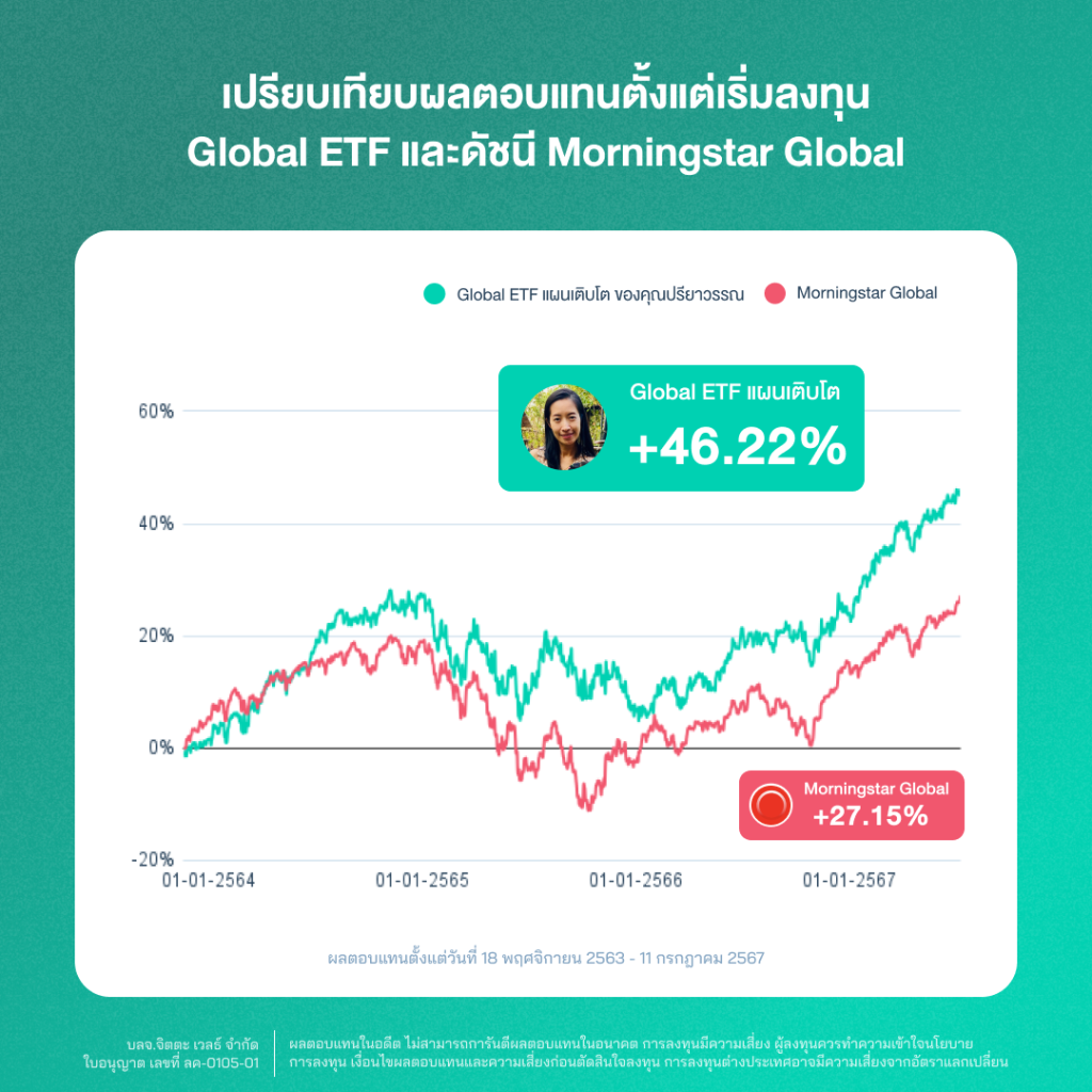 “การ DCA ให้ลูกยาวๆ 20 ปี ใน Global ETF ดีที่สุด ตลาดผันผวนแค่ไหนก็ไม่ต้องกังวลอะไรเลย” Global ETF +46.22% (18 พ.ย. 2563 – 11 ก.ค. 2567)
