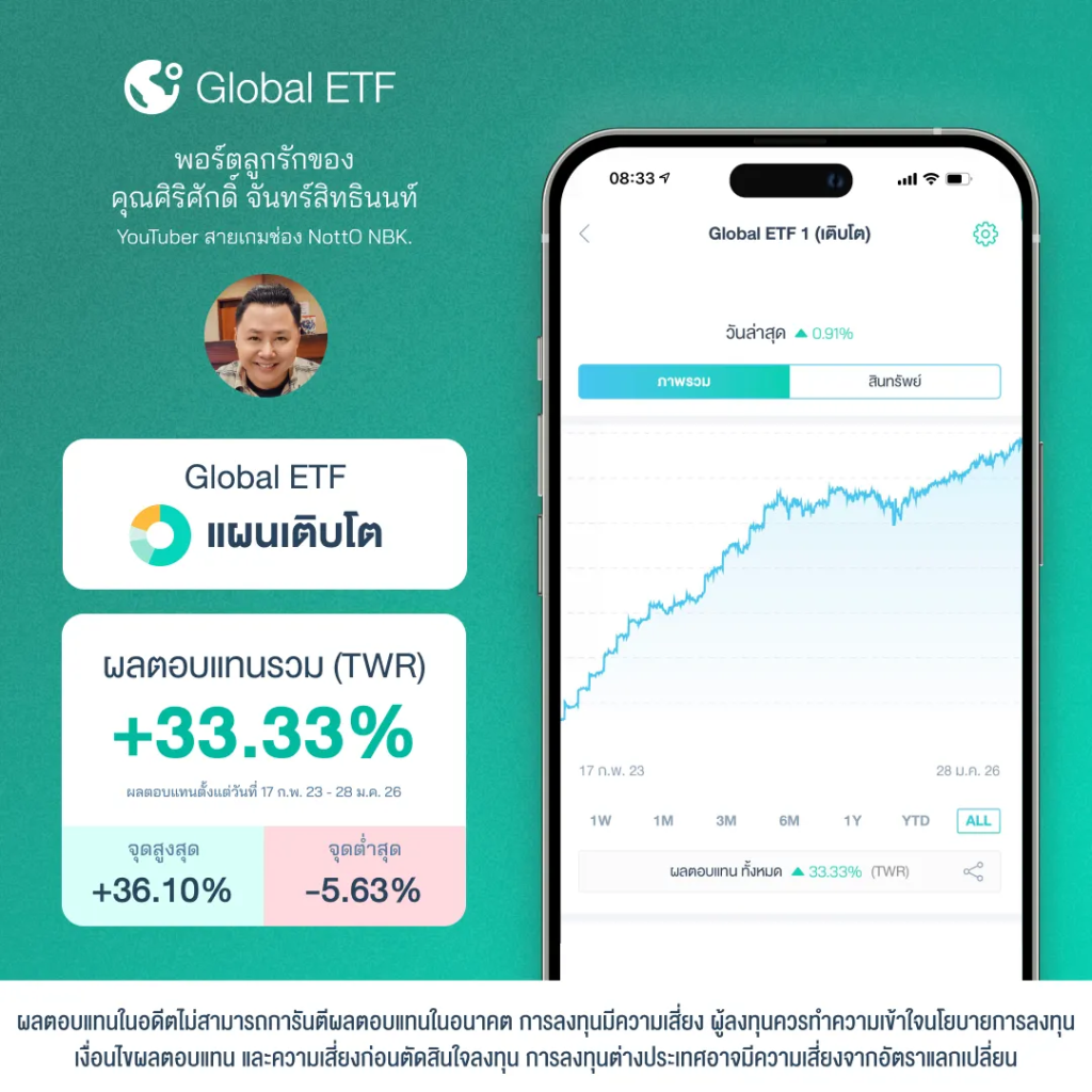 Global ETF ผลตอบแทน +33.33% (17 ก.พ.66-28 ม.ค.69)