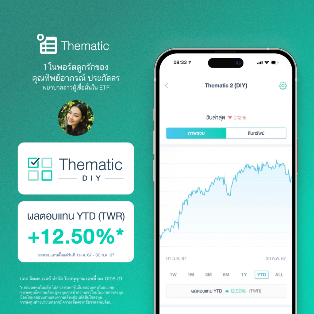 และมีหลายคนคงเคยพยายามมุ่งมั่นทำงานและลงทุนไปพร้อมกัน แต่สุดท้ายก็พบว่ามันไม่ง่ายเลยที่จะทำให้ดีได้พร้อมๆ กัน เช่นเดียวกับคุณทิพย์อาภรณ์ ประภัสสรพยาบาลสาวจากโรงพยาบาลในจังหวัดเชียงใหม่ ที่เคยตกอยู่ในภาวะเครียดกับการลงทุนหุ้นไทยรายตัวที่ต้องวิเคราะห์หุ้นเอง จับจังหวะหุ้นเอง ก่อนจะมาพบแนวทางลงทุนที่ใช่กับ Thematic DIY ที่สร้างผลตอบแทนตั้งแต่ต้นปีแล้ว 12.5% (YTD)